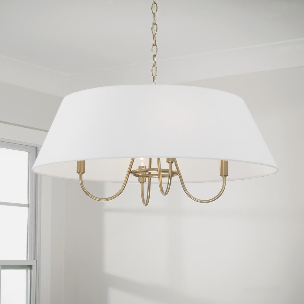 4-Light Pendant in Matte Brass with White Fabric Shade by Capital Canada