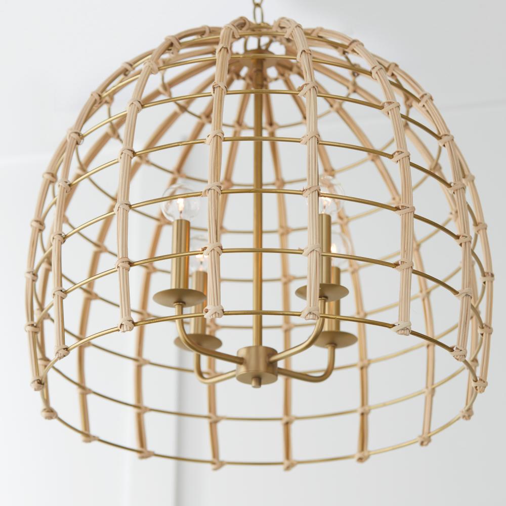 The hand-bent rattan and basket silhouette of the Wren Large Pendant creates sculptural intrigue. The Matte Brass finish brings out the natural warmth of the artisan crafted material for a style that is organically beautiful.