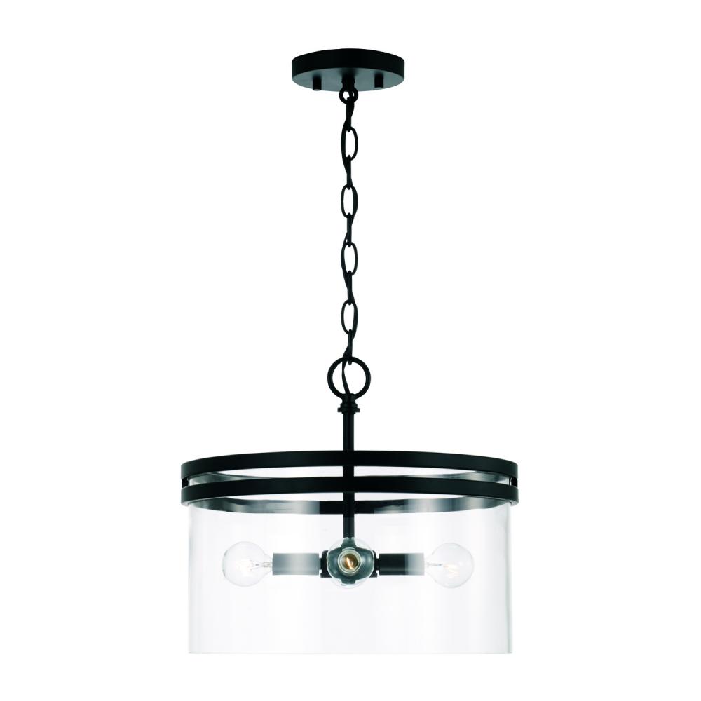 14.5"W x 12.75"H 4-Light Dual Mount Pendant or Semi-Flush in Matte Black with Clear Glass