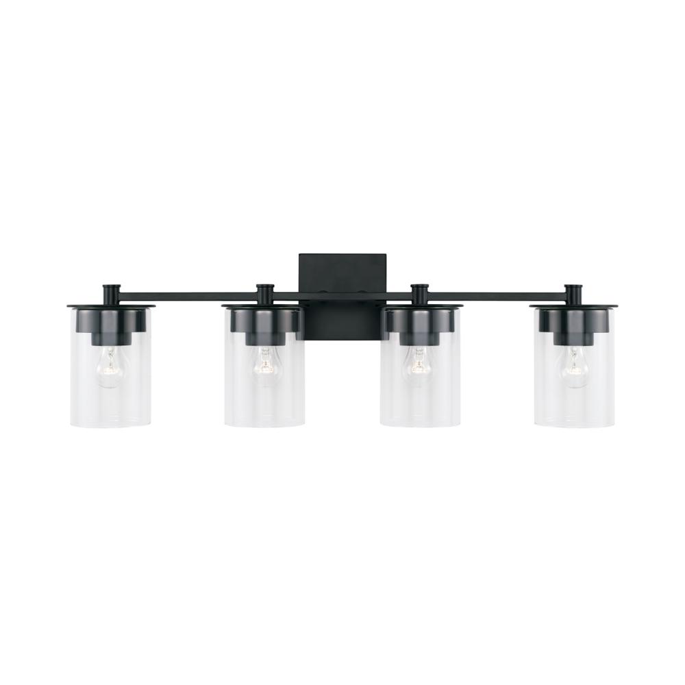 Clean lines and modern forms create the Mason 4-Light Vanity for Homeplace. The Matte Black finish accents the designer details and adds warmth to any bathroom. Also available in a 2-Light or 3-Light.