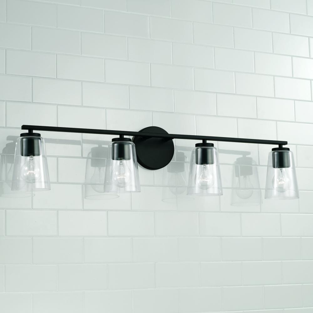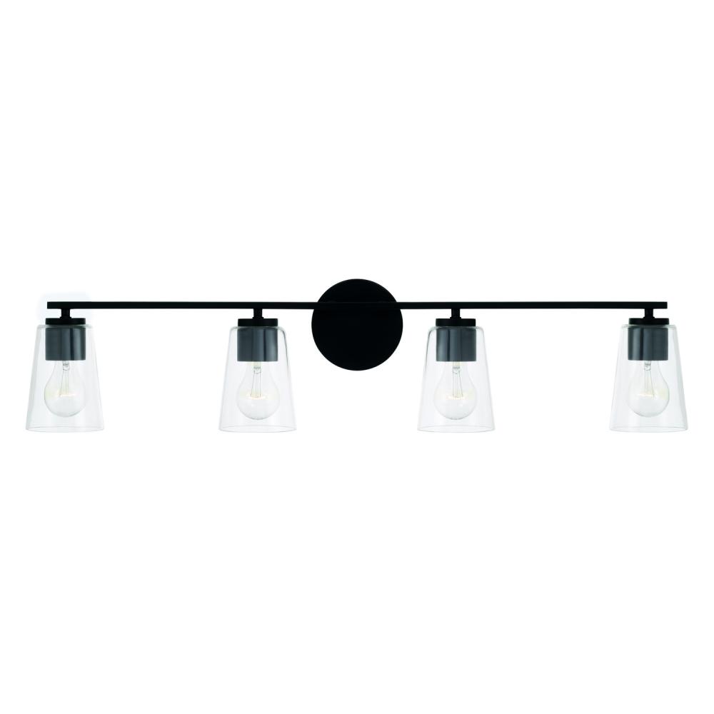 35.25"W x 8.25"H 4-Light Vanity in Matte Black with Clear Glass