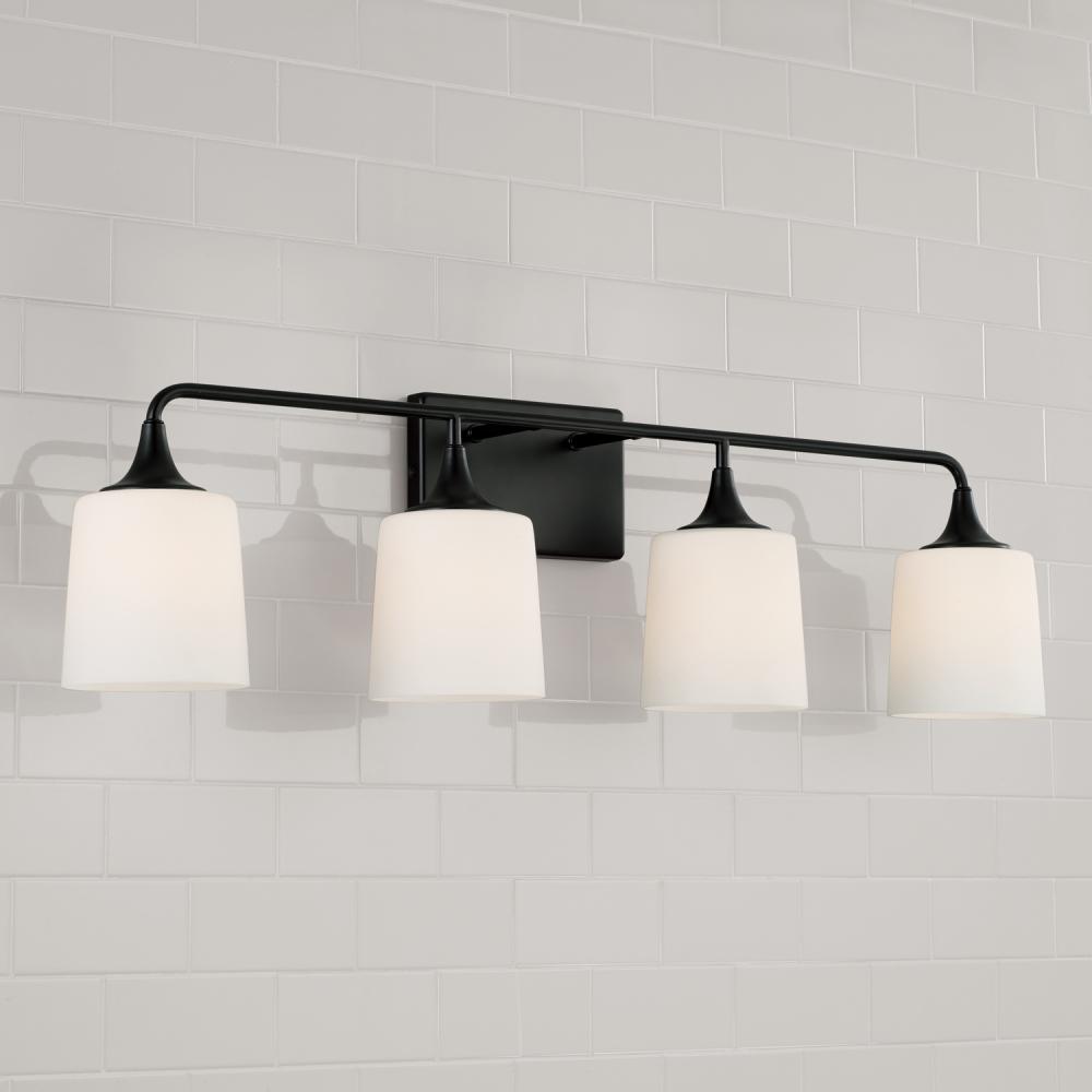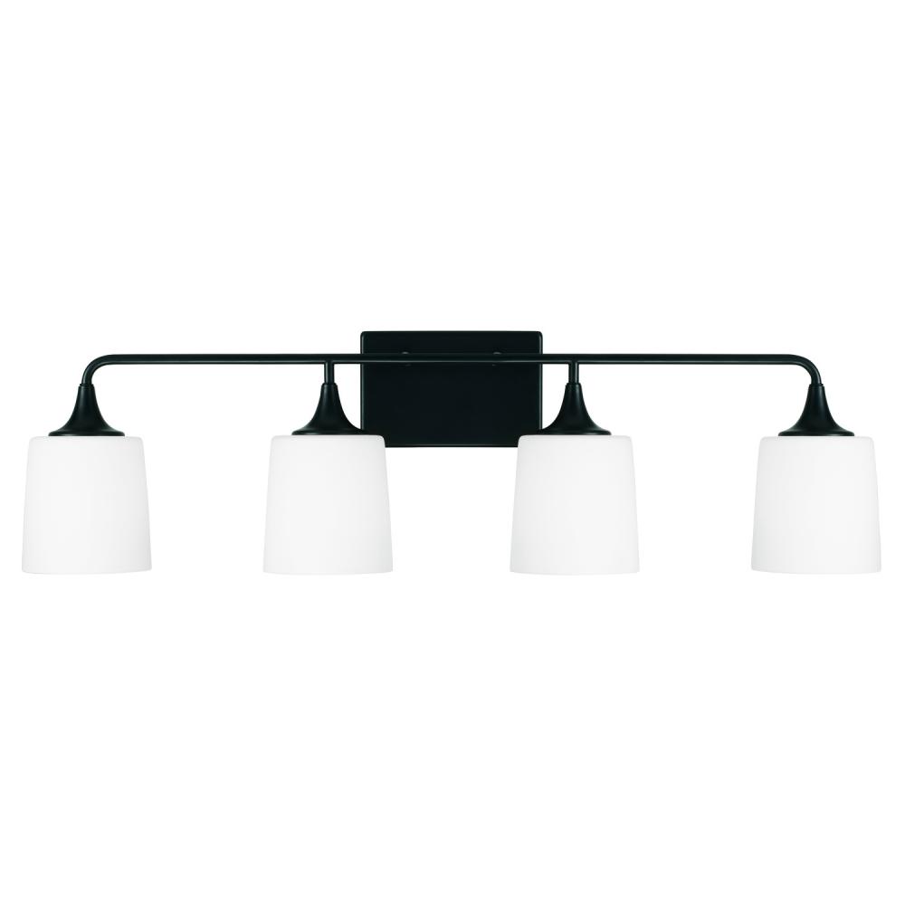 36.75"W x 10.25"H 4-Light Vanity in Matte Black with Soft White Glass