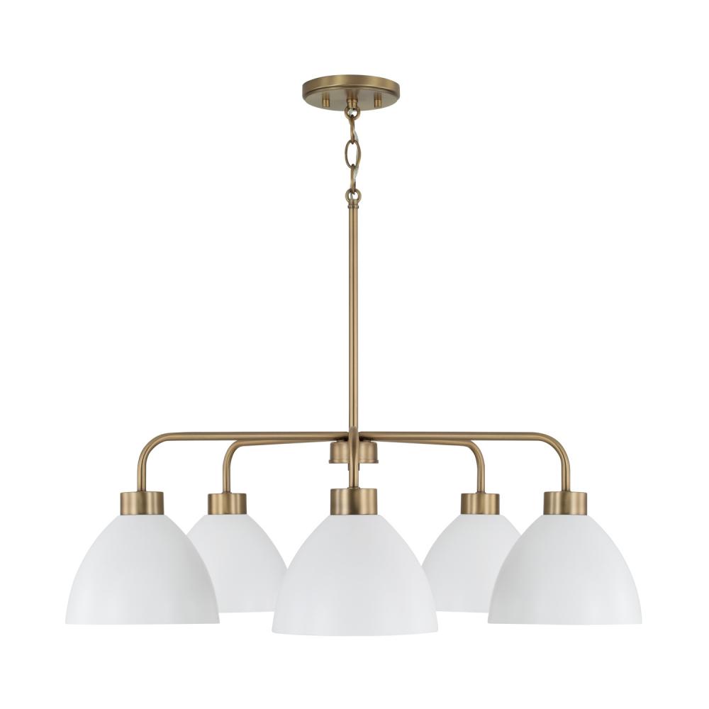 5-Light Chandelier in Aged Brass and White by Capital Canada