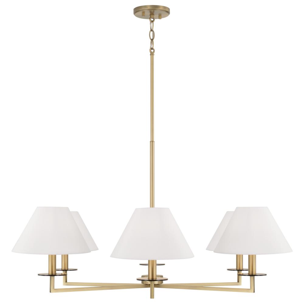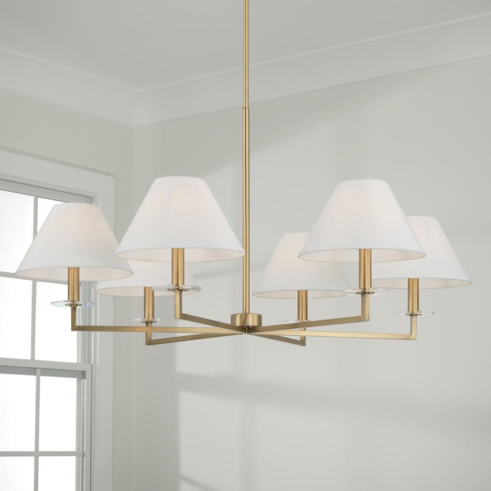 6-Light Chandelier in Aged Brass with White Fabric Stay-Straight Shades by Capital Canada