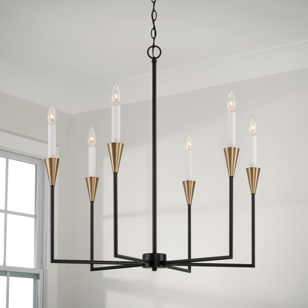 6-Light Chandelier in Black and Aged Brass with Interchangeable White or Aged Brass Candle Sleeves by Capital Canada