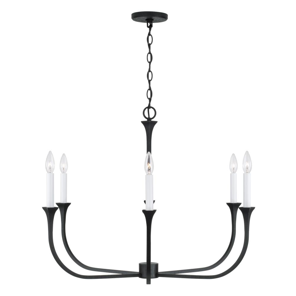 6-Light Chandelier in Black Iron with Interchangeable White or Black Iron Candle Sleeves by Capital Canada
