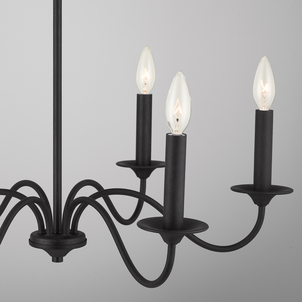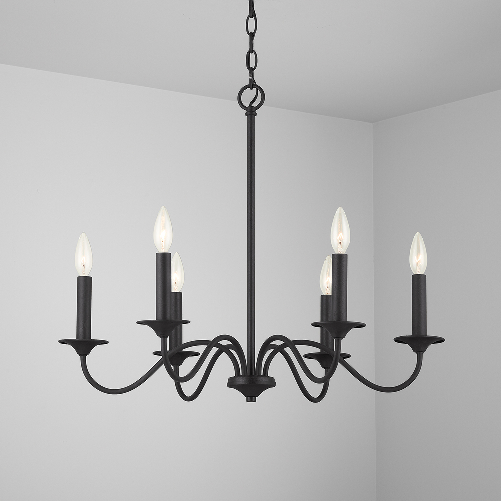 Classic and charming elements are at play in this collection. The slightly whimsical characteristics complement the airy and light silhouette. The 6-light chandelier is available in 26 or 32 diameter.