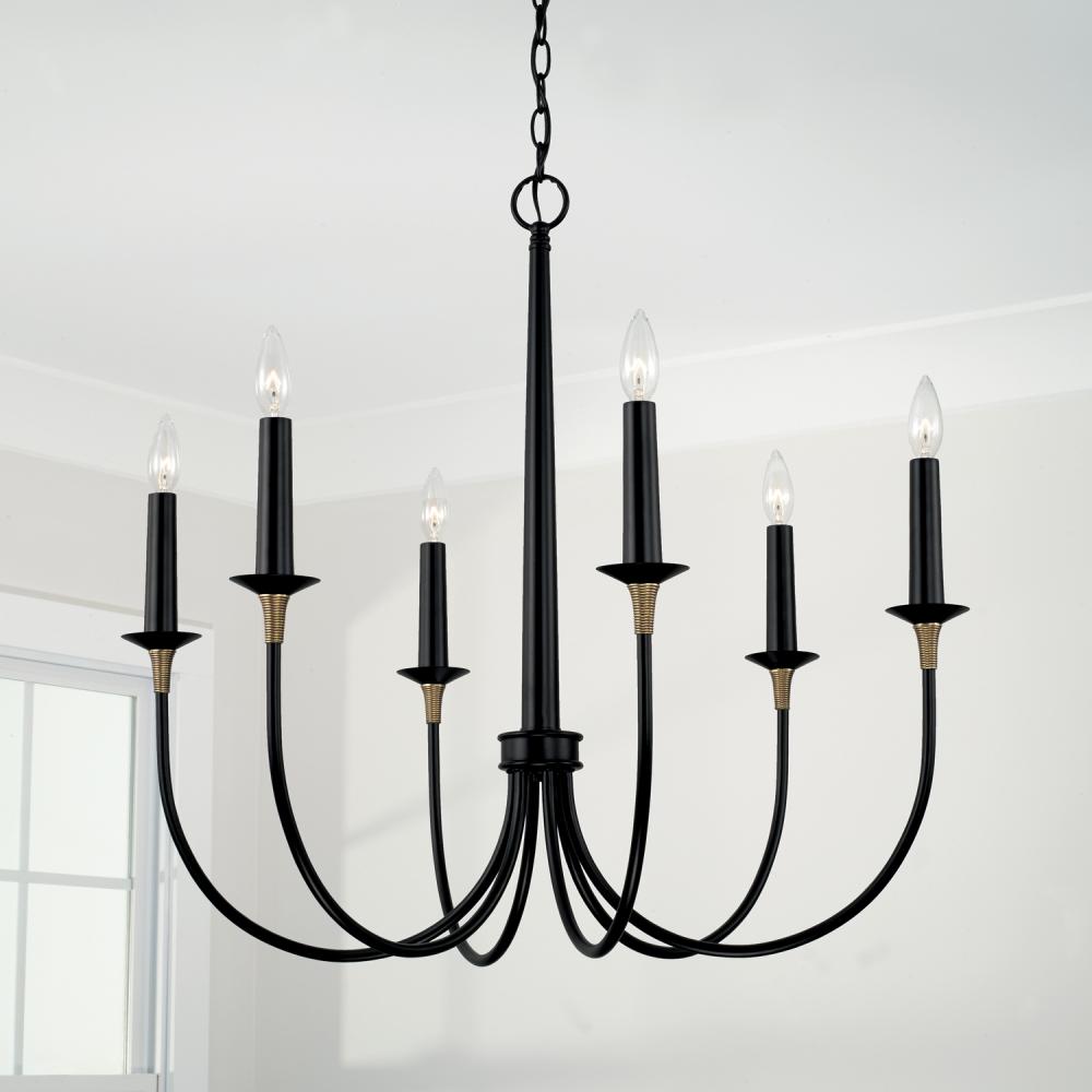 Sweeping curves and a classic shape dials up the drama with the Amara Medium Chandelier. The wrapped detail in a brass tone adds a layer of unexpected dimension to the familiar form finished in Matte Black.