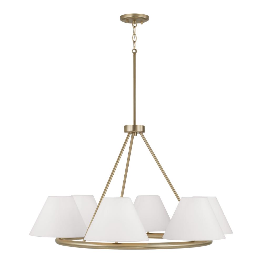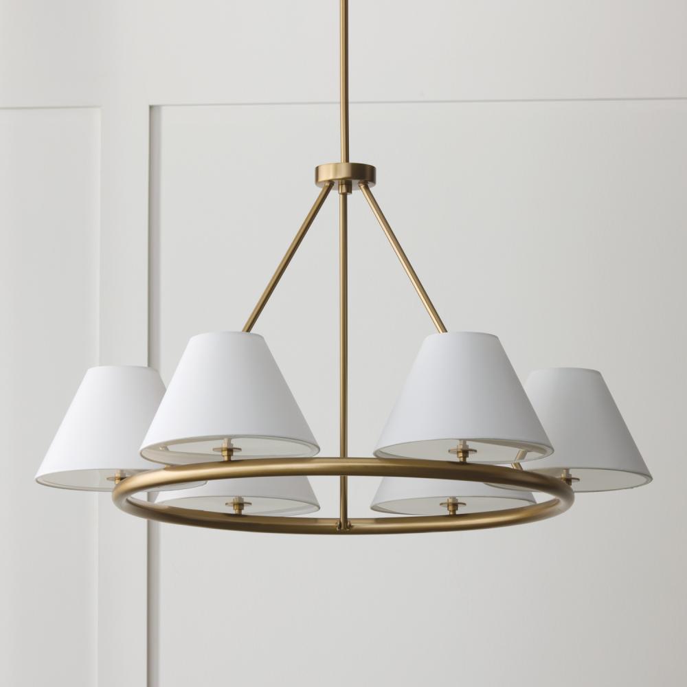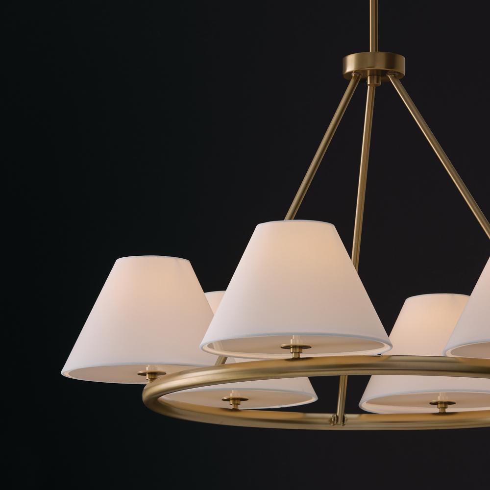 6-Light Circular Chandelier in Matte Brass with White Fabric Shades and Glass Diffusers by Capital Canada
