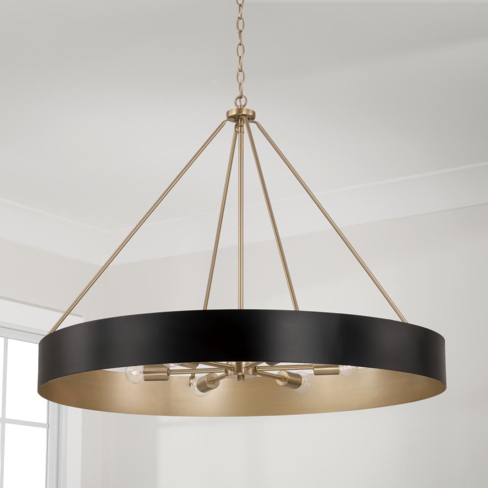 6-Light Modern Circular Metal Chandelier in Matte Black with Painted Matte Brass Interior by Capital Canada