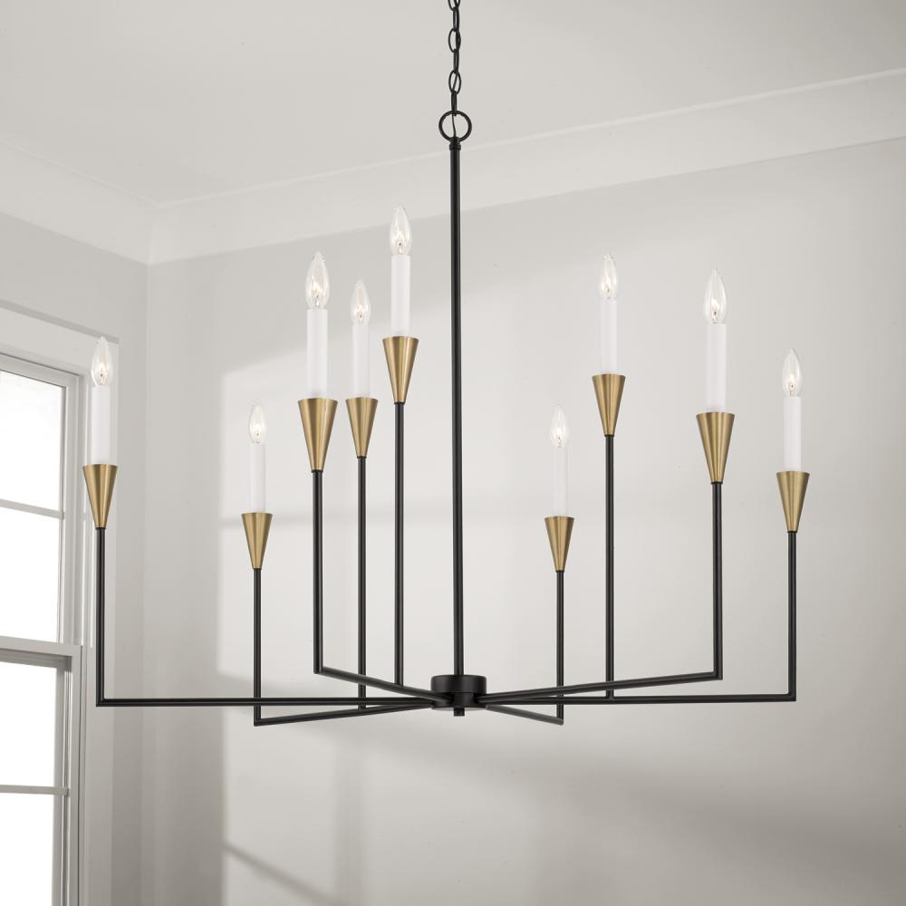 8-Light Chandelier in Black and Aged Brass with Interchangeable White or Aged Brass Candle Sleeves by Capital Canada