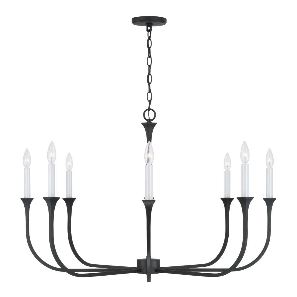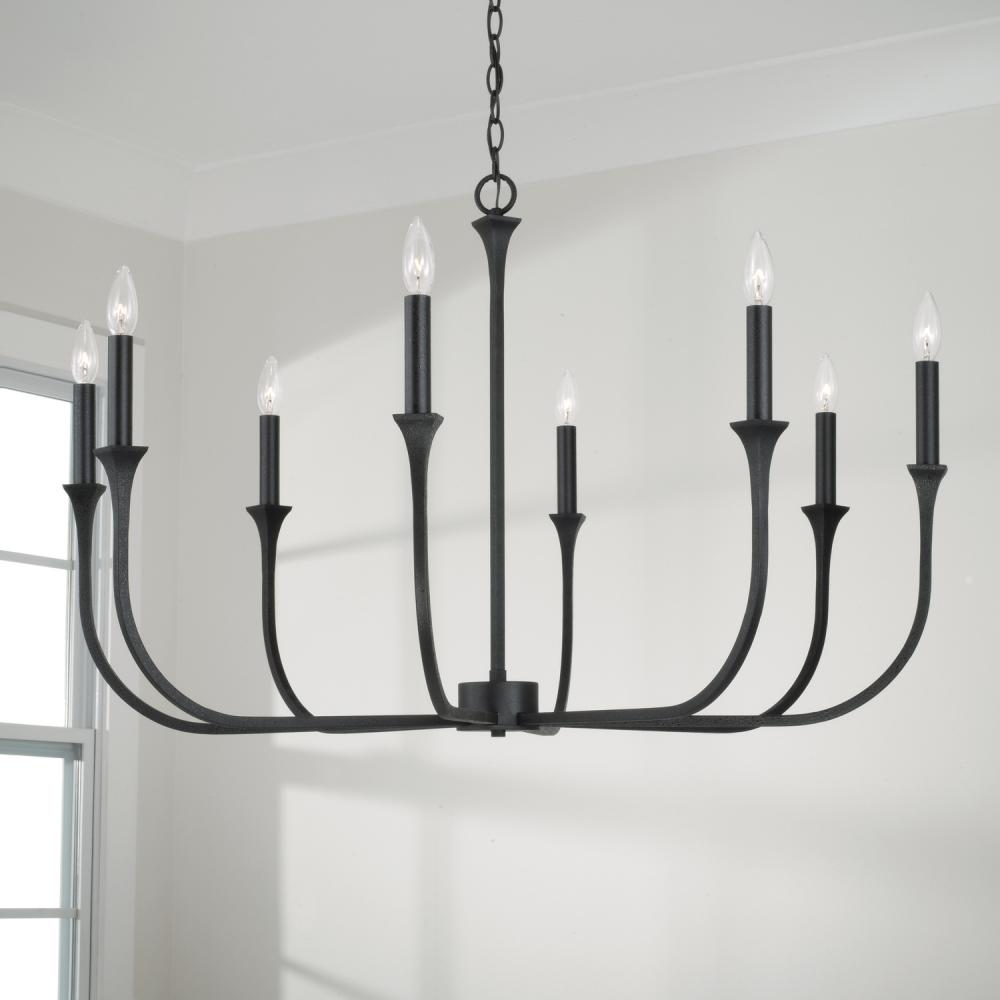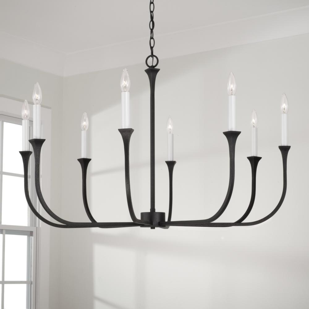8-Light Chandelier in Black Iron with Interchangeable White or Black Iron Candle Sleeves by Capital Canada