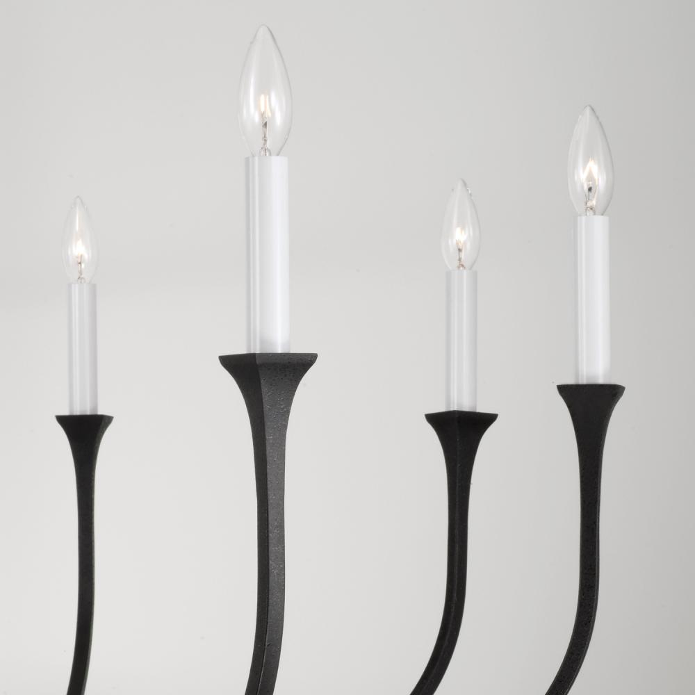 8-Light Chandelier in Black Iron with Interchangeable White or Black Iron Candle Sleeves