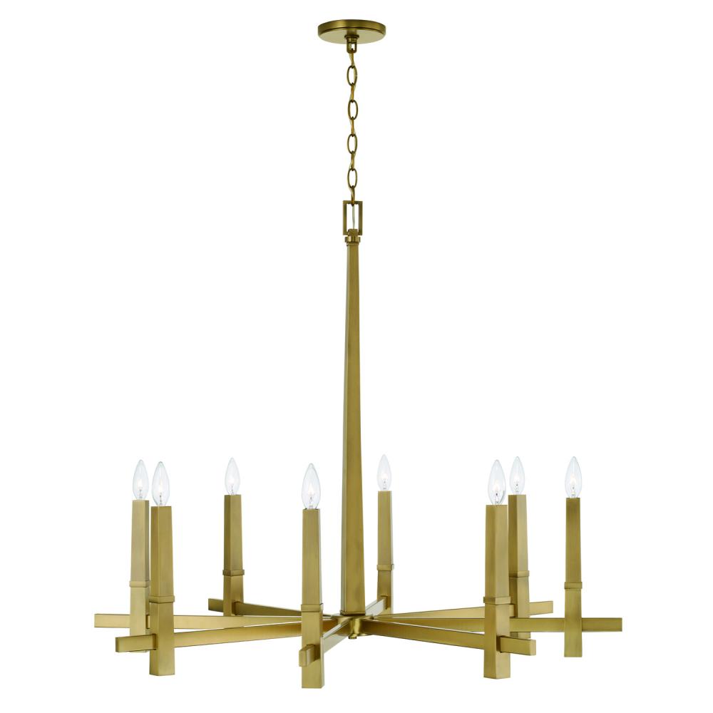 39"W x 33.5"H 8-Light Chandelier in Aged Brass