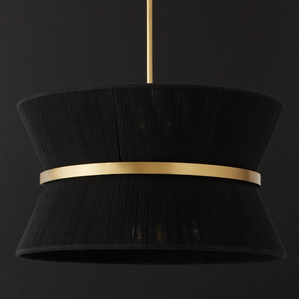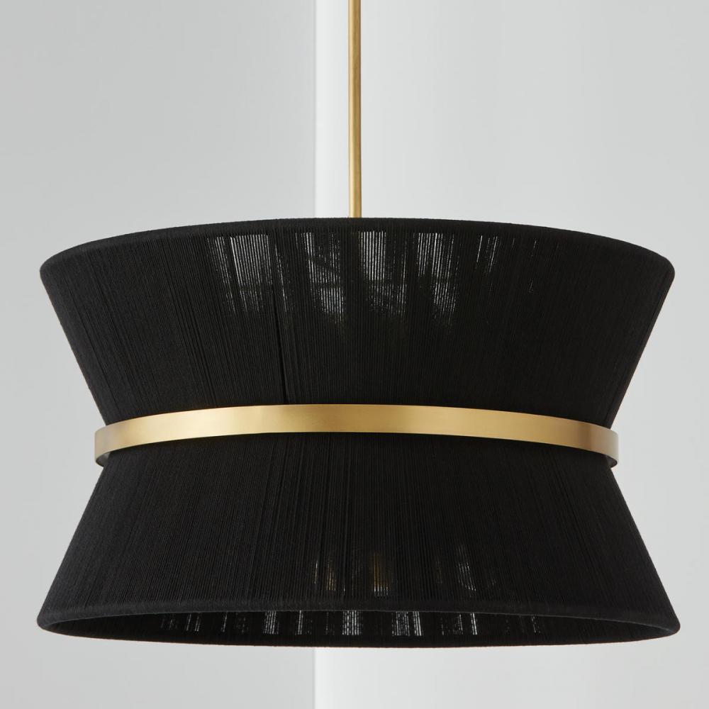 Hand-wrapped Black Rope in a tapered silhouette is paired with a slightly distressed painted Brass, creating contrast, drama and glamour in the Cecilia collection. This sleek 8-Light Pendant is available in multiple sizes.