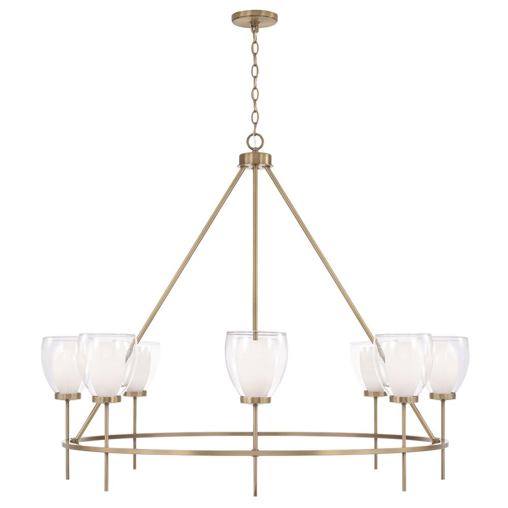 8-Light Ring Chandelier in Aged Brass with Layered White and Clear Glass by Capital Canada