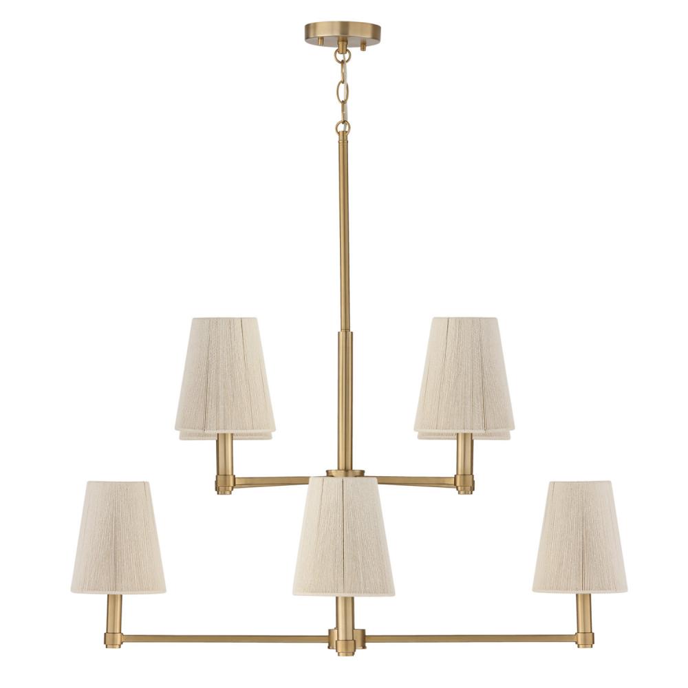 8-Light Two-Tier Chandelier in Matte Brass with Tapered Bleached Natural Rope Shades by Capital Canada