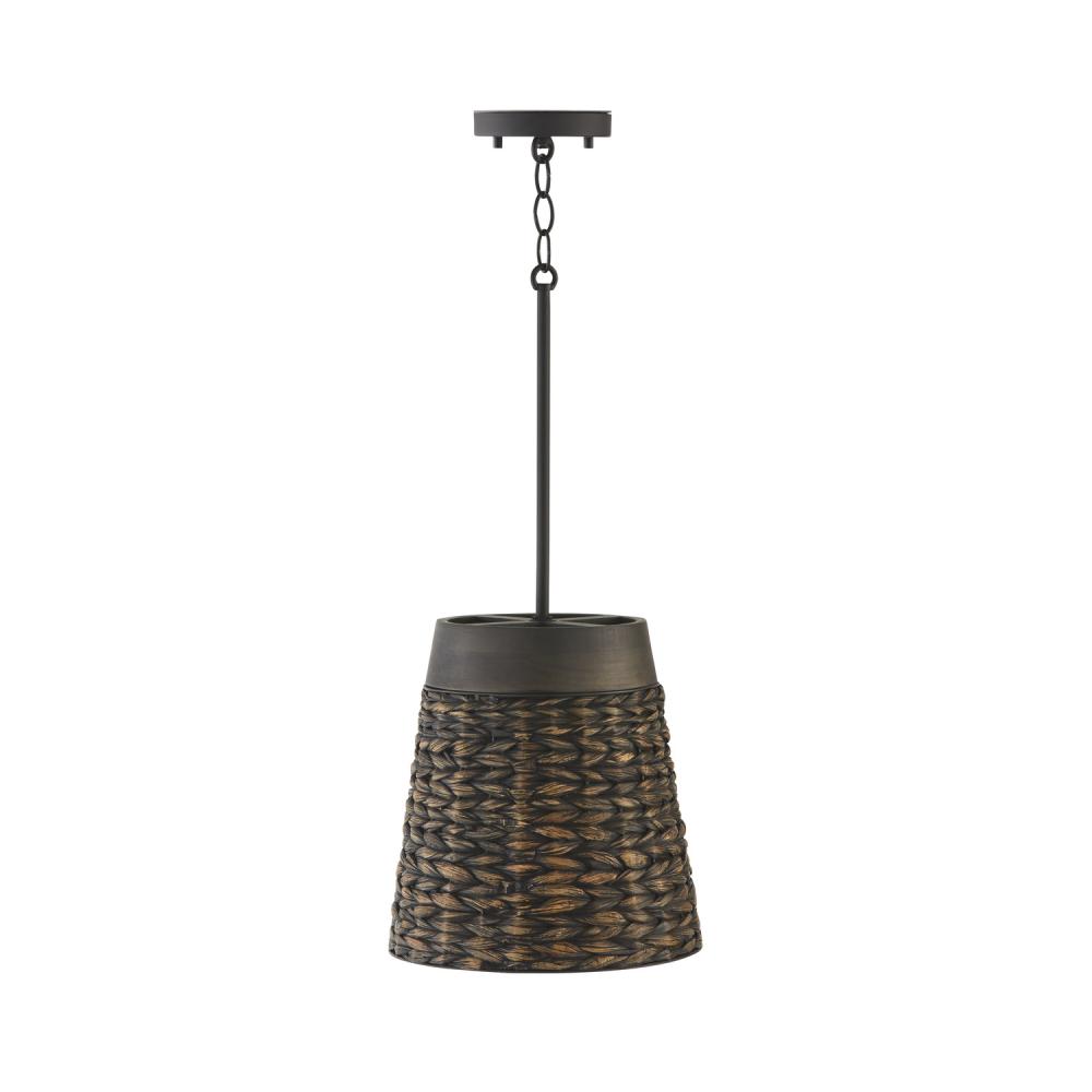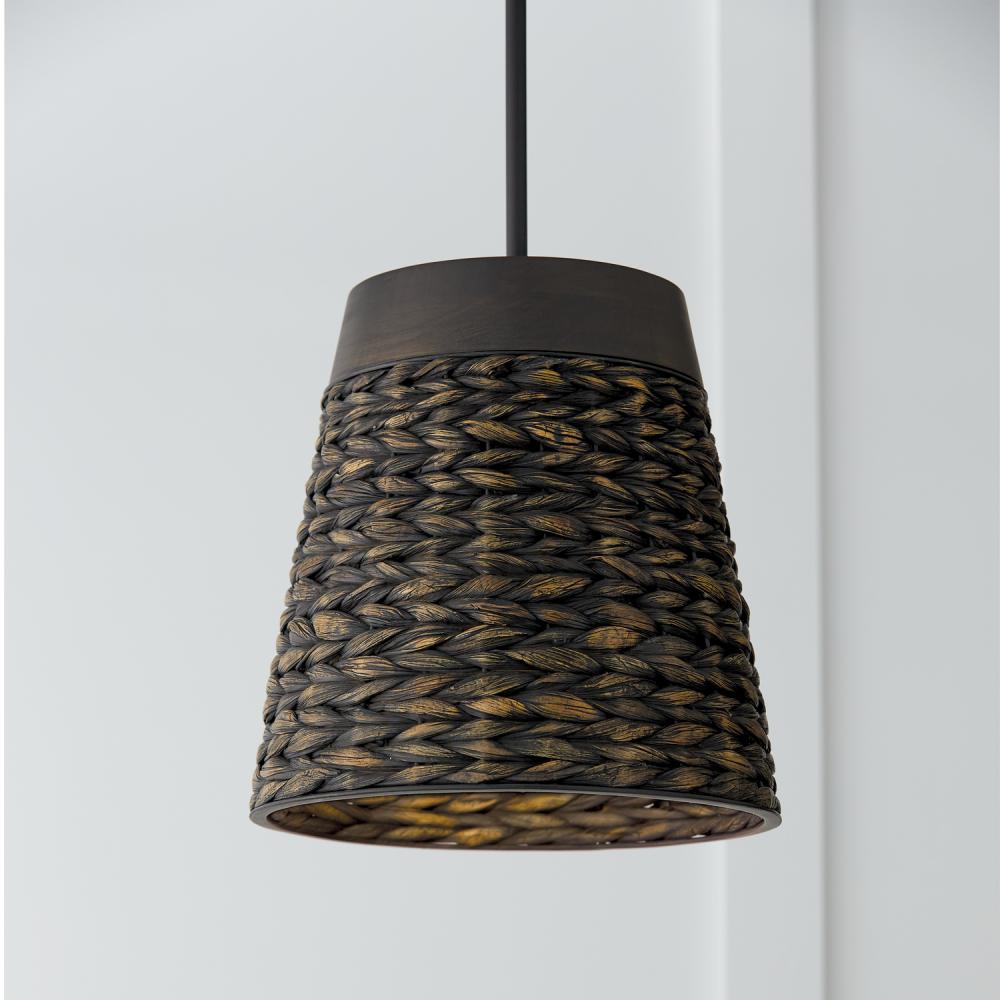The classic style and timeless texture create the Tallulah Small Pendant. The classic cone silhouette is given a fresh transformation with the hand-braided water hyacinth and band of mango wood. The dark tones of the Charcoal Wash finish add dimension and drama to any space.