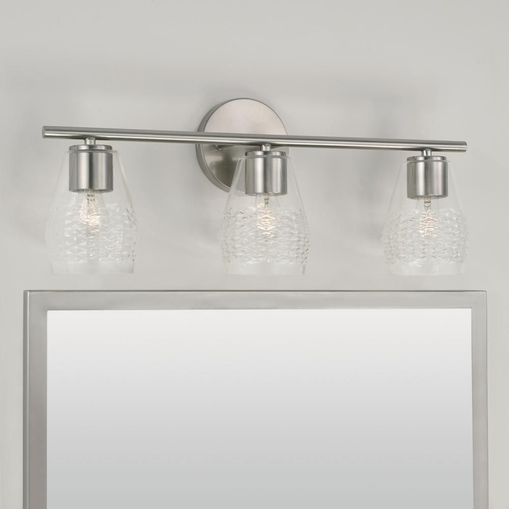 FINISH: With a soft, visual texture, the Brushed Nickel finish is a light-medium grey with slightly warm undertones.