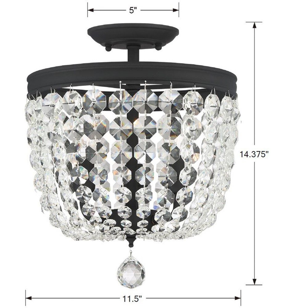 Archer 3 Light Swarovski Strass Crystal Black Forged Semi Flush Mount by CRYSTORAMA