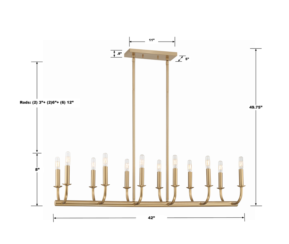 Bailey 12 Light Aged Brass Linear Chandelier by CRYSTORAMA