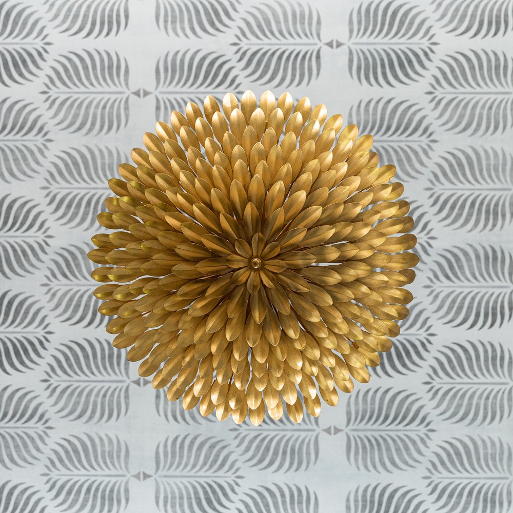 Layers of individual wrought iron leaves deliver a stunning, unique, and functional light. The tailored elegance of the shimmering metallic florals is perfect for a transitional home though versatile enough to be incorporated into any modern design. While ideal for a bedroom, living area, or kitchen, it can be used anywhere you want to add a bit of glam.