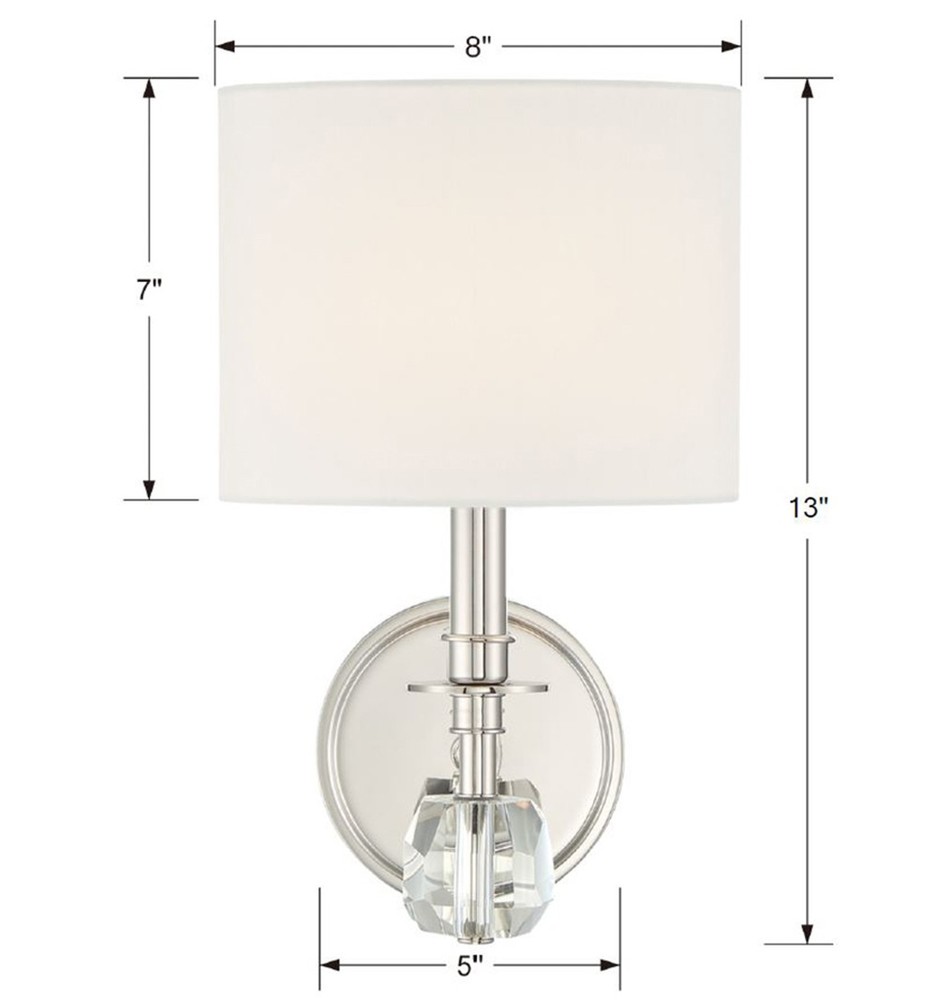 The Chimes fixture is the perfect amount of classic elegance with its beveled round backplate and sleek faceted cut organically shaped crystal beaded element. A white silk shade tops the candelabra bulb exuding soft, ambient glow that is perfect for hallways, bathrooms or over dining buffets.