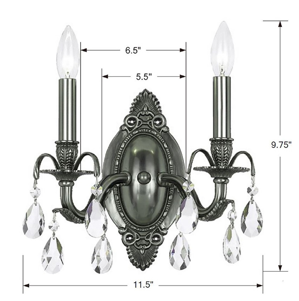 Dawson 2 Light Hand Cut Crystal Pewter Sconce by CRYSTORAMA