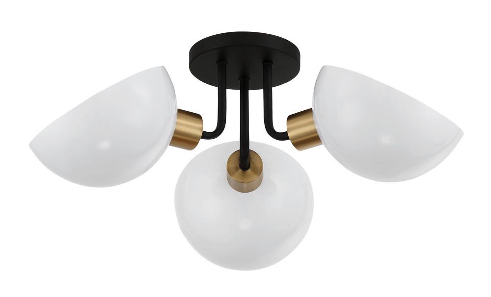 Gigi 3 Light Black + Aged Brass Semi Flush Mount