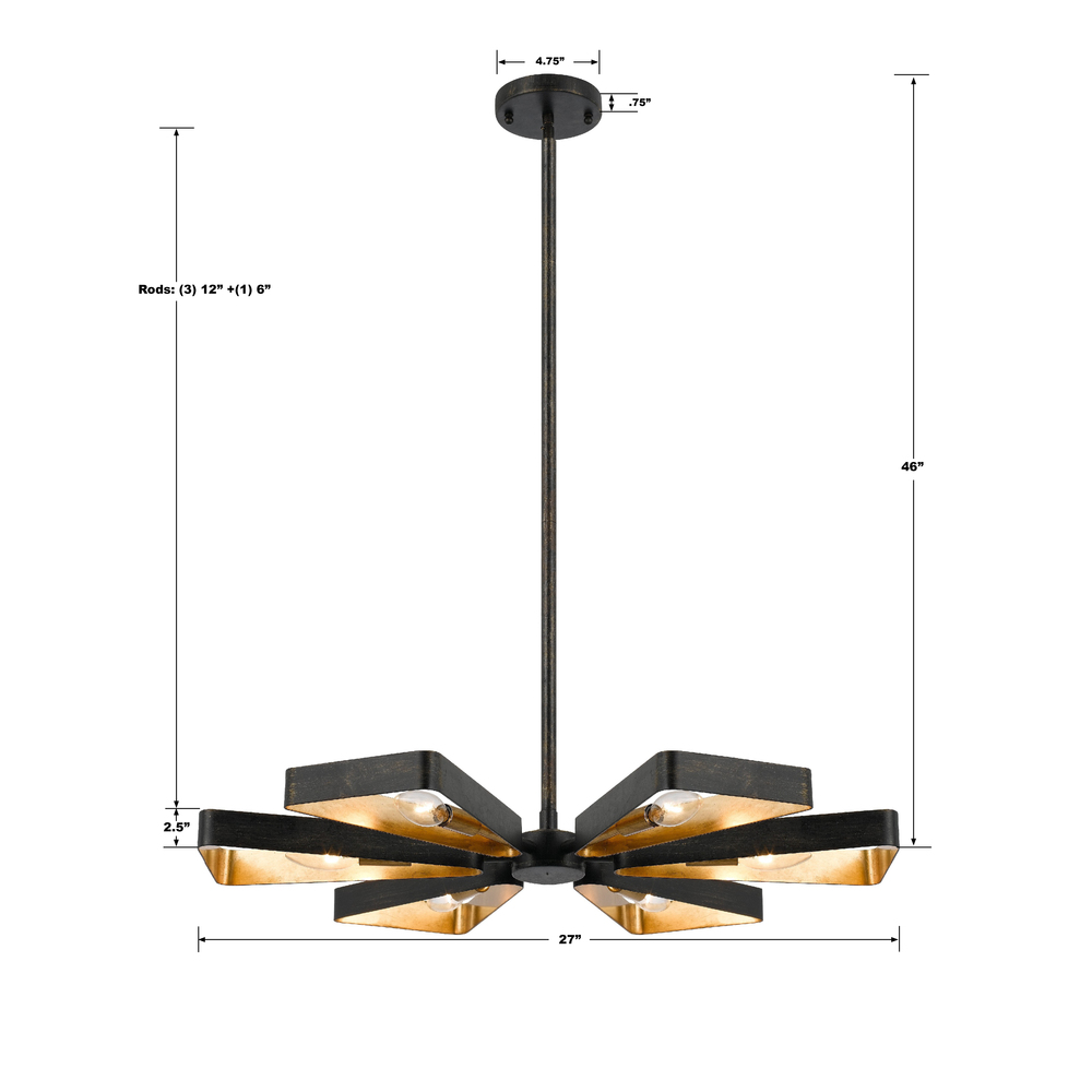 Luna 6 Light English Bronze + Antique Gold Chandelier by CRYSTORAMA