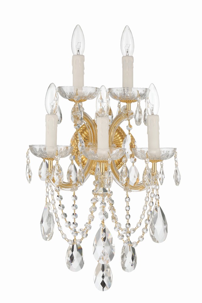 Maria Theresa 5 Light Hand Cut Crystal Gold Sconce by CRYSTORAMA