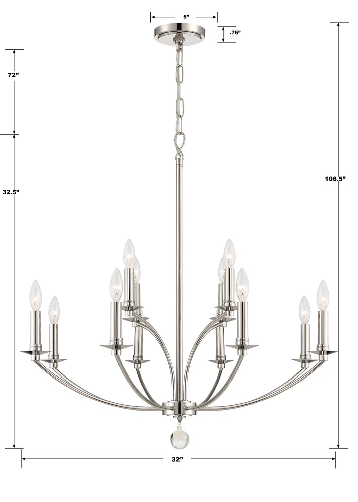 Mila 12 Light Polished Nickel Chandelier by CRYSTORAMA