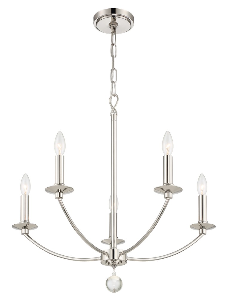 Mila 5 Light Polished Nickel Chandelier by CRYSTORAMA