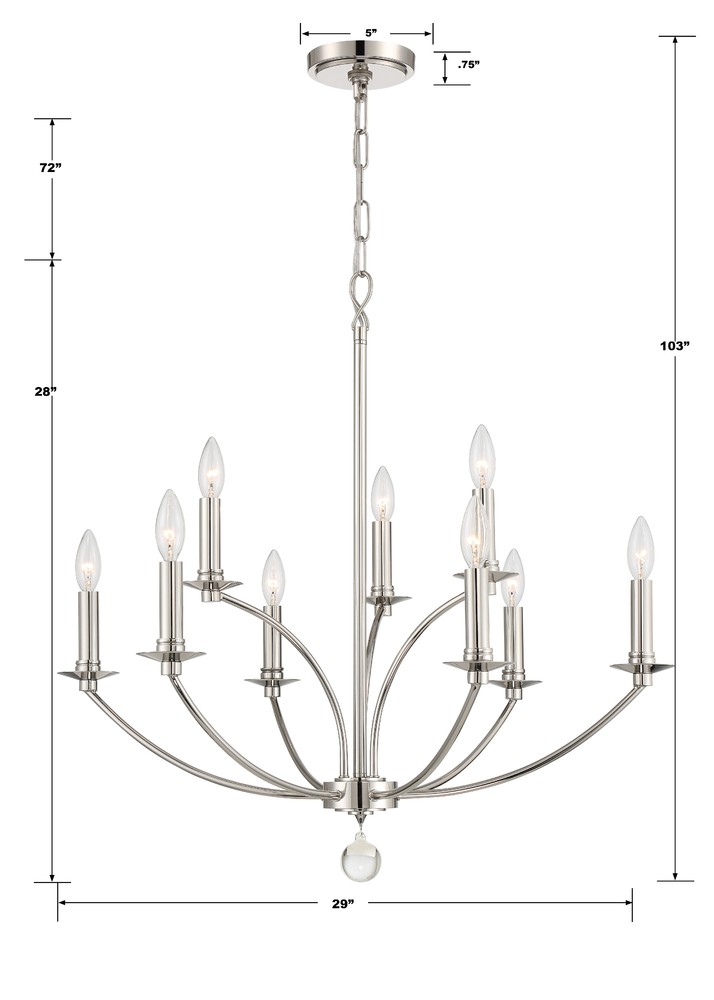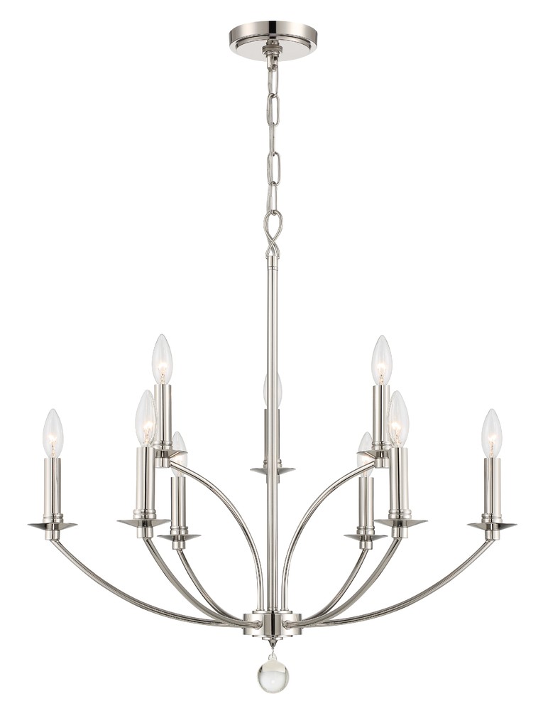 Mila 9 Light Polished Nickel Chandelier by CRYSTORAMA