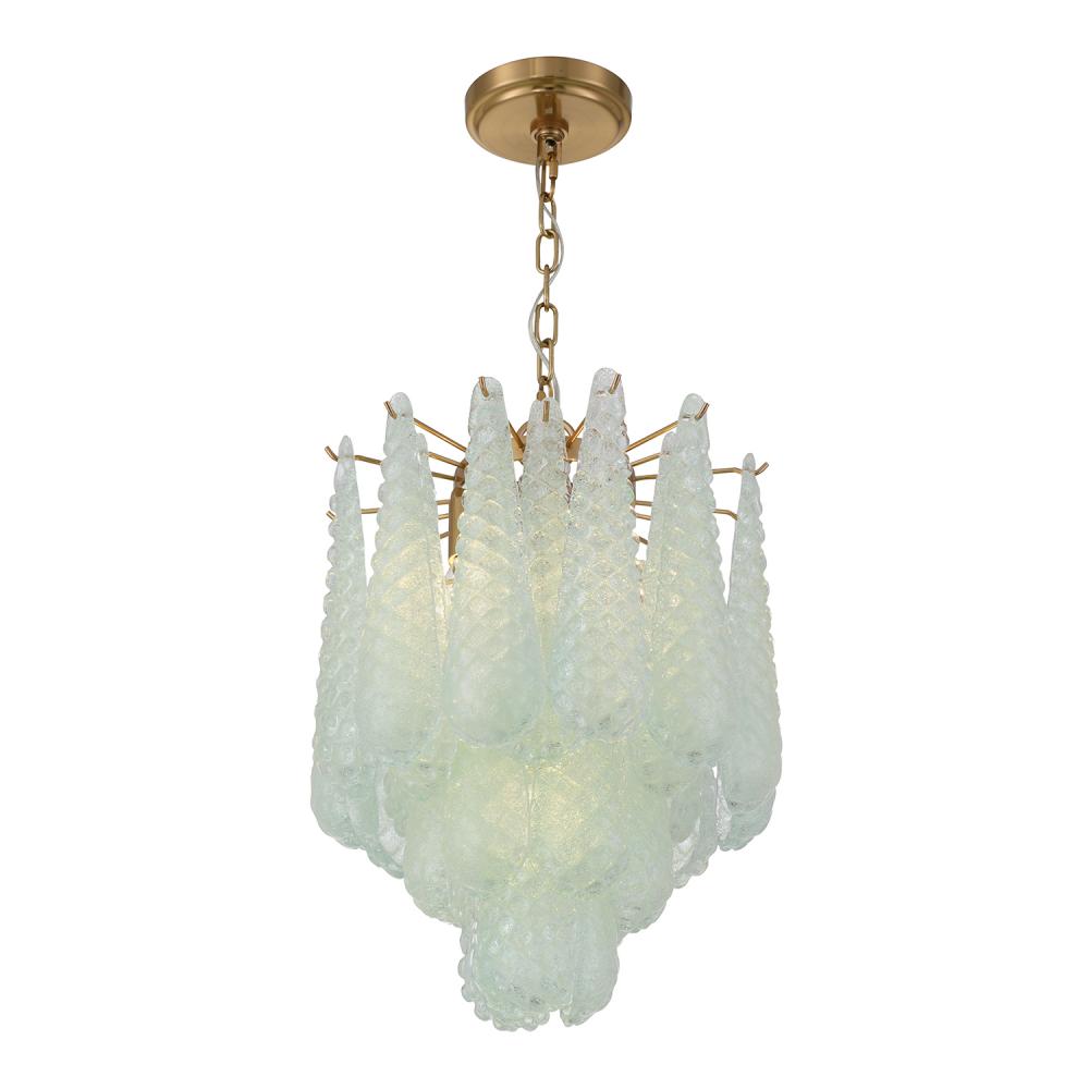 Inspired by vintage and mid-century design, the Ollie collection features hand-blown glass with intricate raised details. The beautiful hues of this collection shift subtly depending on whether the light is on or off, creating a dynamic and artistic effect. This unique piece blends mid-20th-century charm with a modern touch, making it a true statement fixture.