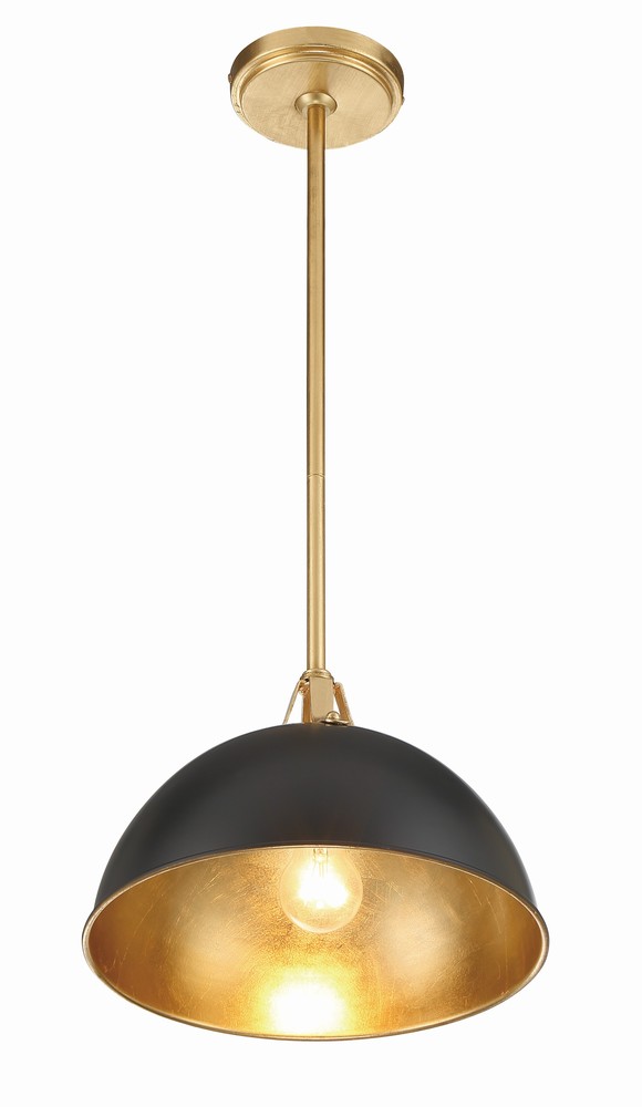Soto 1 Light Matte Black + Antique Gold Mini Pendant by CRYSTORAMA