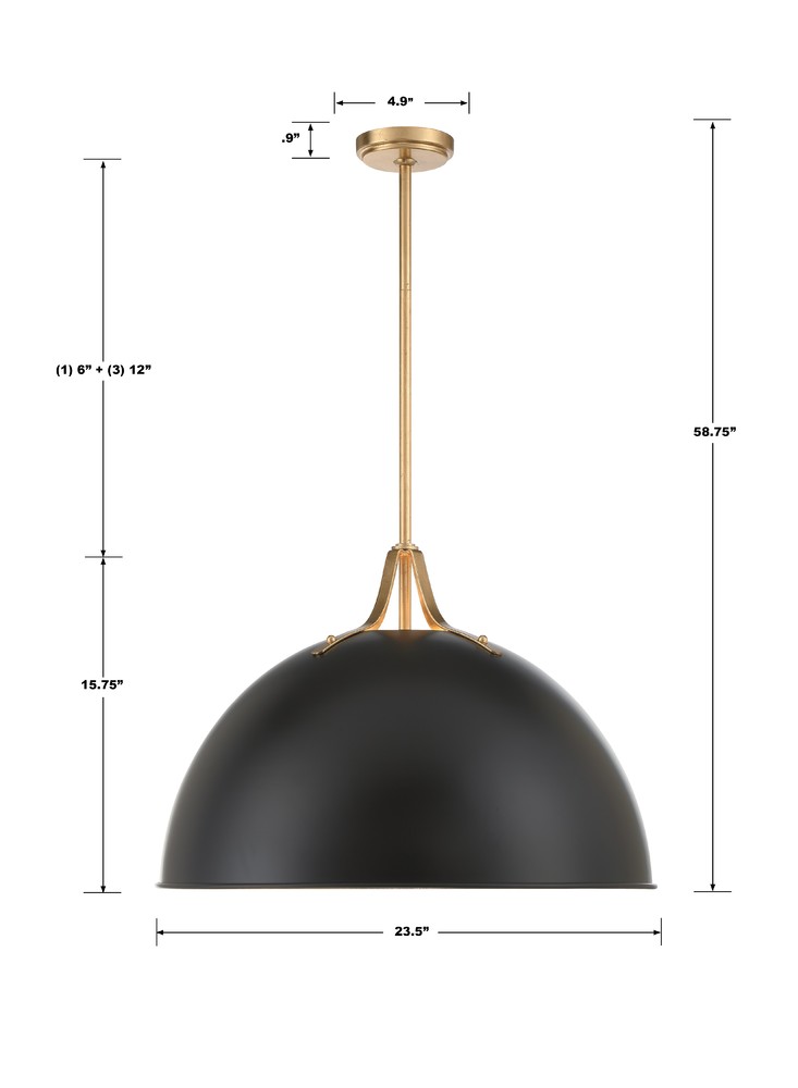 Black metal dome pendant with gold accents.