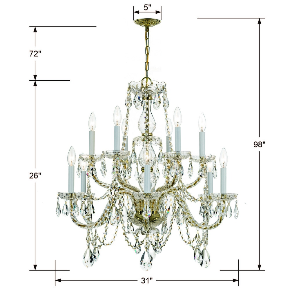 Traditional Crystal 12 Light Hand Cut Crystal Polished Brass Chandelier by CRYSTORAMA
