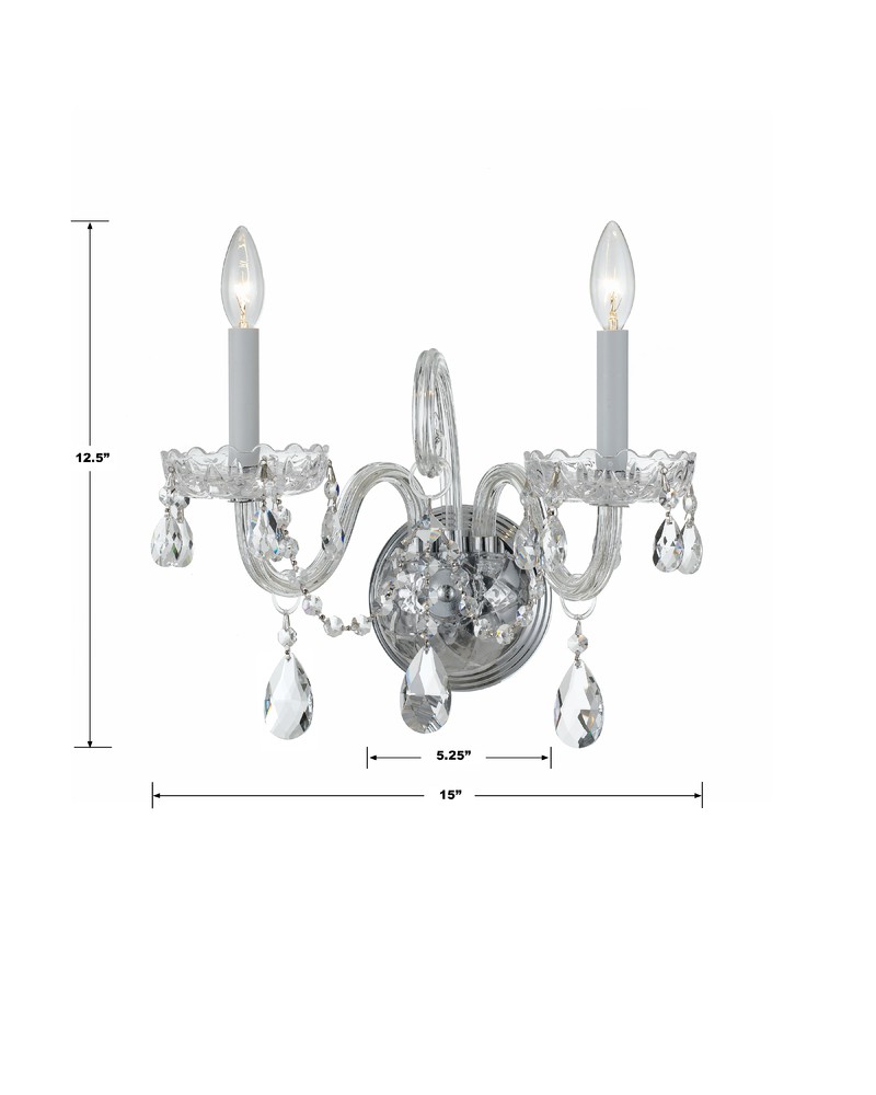 Traditional Crystal 2 Light Hand Cut Crystal Polished Chrome Sconce by CRYSTORAMA