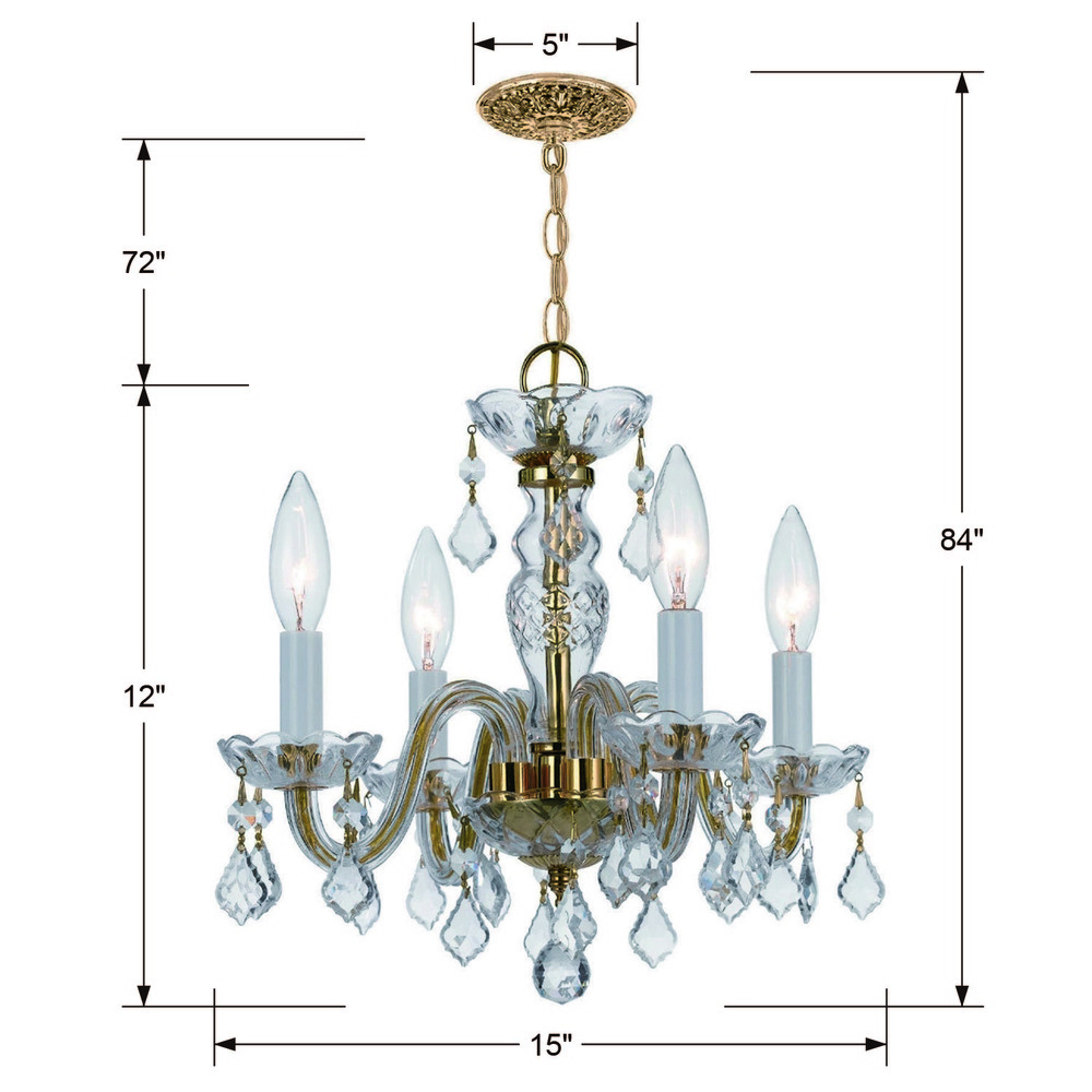Traditional Crystal 4 Light Clear Italian Crystal Polished Brass Mini Chandelier by CRYSTORAMA