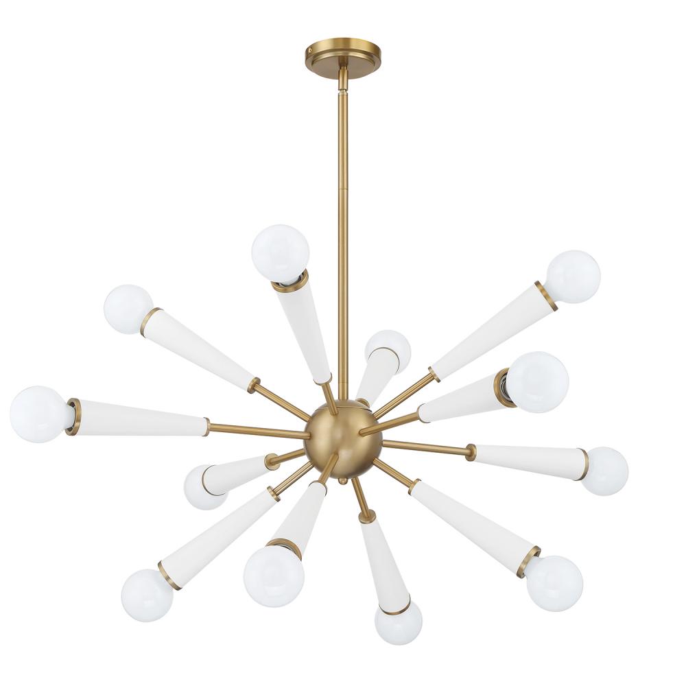 Zodiac 12 Light Aged Brass + Matte White Chandelier