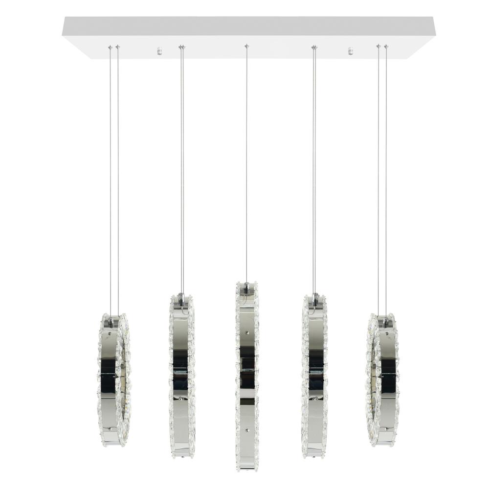 This Celina LED Chandelier Pool Table/Island Light features a 26 inch long rectangular canopy in chrome holding glittering crystal rings in linear formation. This island/pool table light displays fascinating extravagance that isn't over the top. Suspe