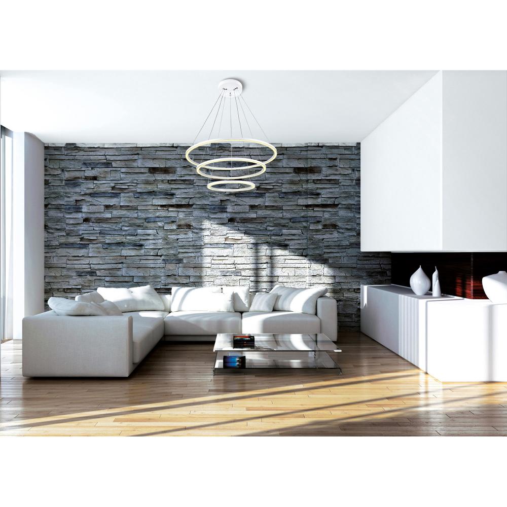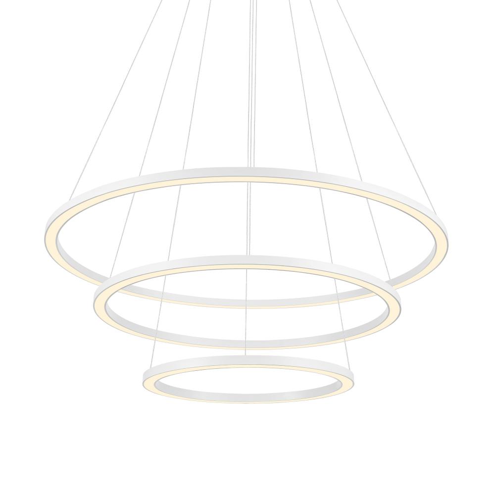 The Chalice Trio LED Chandelier isn't simply a light fixture; it's a statement-making art piece, too. Suspending from a white canopy are three concentric LED rings with adjustable height and angle. Suspend them flat and wide or position two rings a