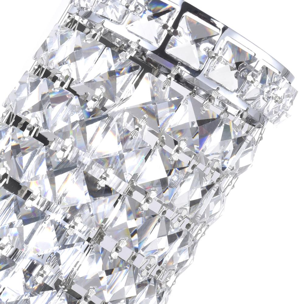 Love that high-end custom bathroom style? Achieve it effortlessly simply by adding a pair of the Colosseum 2 Light Wall Sconce. This wall-mounted bathroom lighting option measures 12 inches tall and 5 inches wide and is covered in faceted clear crystals. P