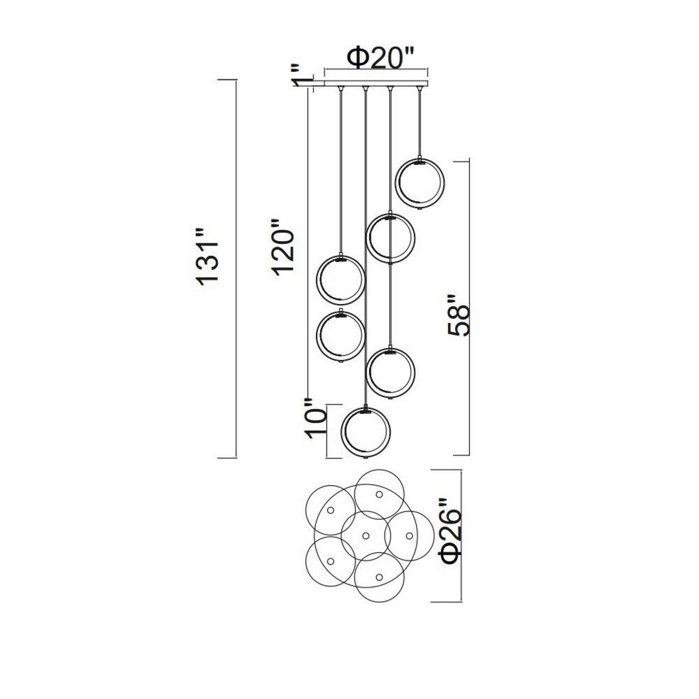 Bring a brilliant modern style to your space with the Da Vinci 6 Light Chandelier in Brass. This multi Light pendant features a cluster of white frosted glass orbs with each orb enveloped by a golden ring. This luminaire can beautifully illuminate a stairw