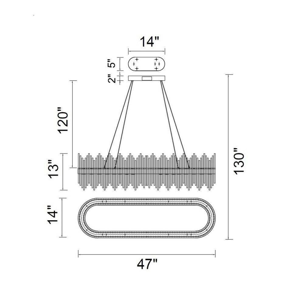 The Genevieve 47 inch LED Chandelier in Medallion Gold will undoubtedly update your decor. This transitional island/pool table light features a golden racetrack frame holding a graceful assembly of clear crystals. Offering you a glistening display of light