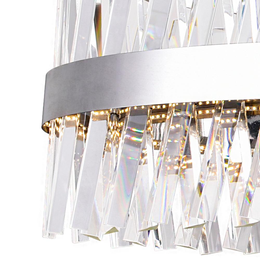 Ready to wash a room with elegant light is this Glace 40 inch LED Circular Chandelier. A thick metal band has translucent crystals spears radiating and reflecting light with class. This shapely light source glimmers and dazzles with opulent illumination. W
