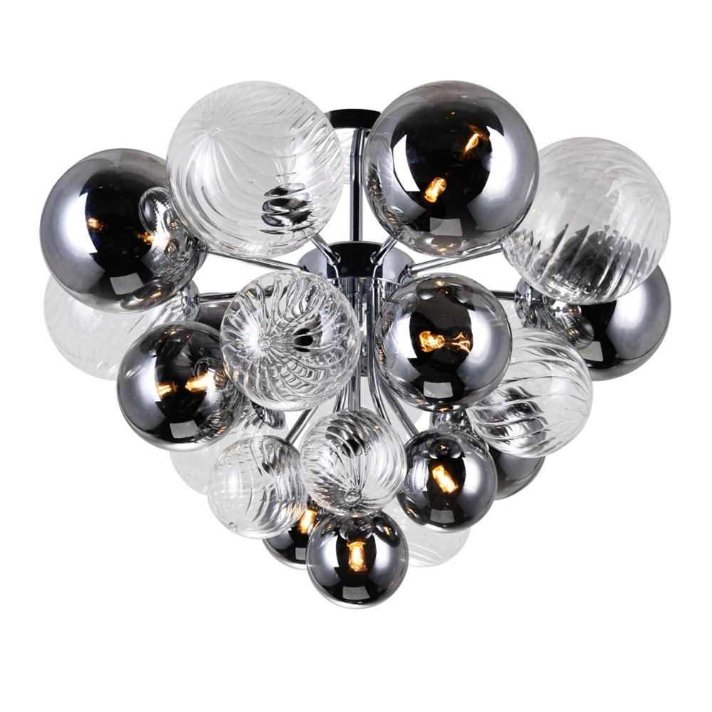 A dynamic piece designed to infuse a sense of style to your space, this Pallocino 10 Light Flush Mount Fixture in Chrome Finish displays an interesting cluster of clear and smoke-colored glass globes that emit an ambient glow. Perfect for an informal mascu