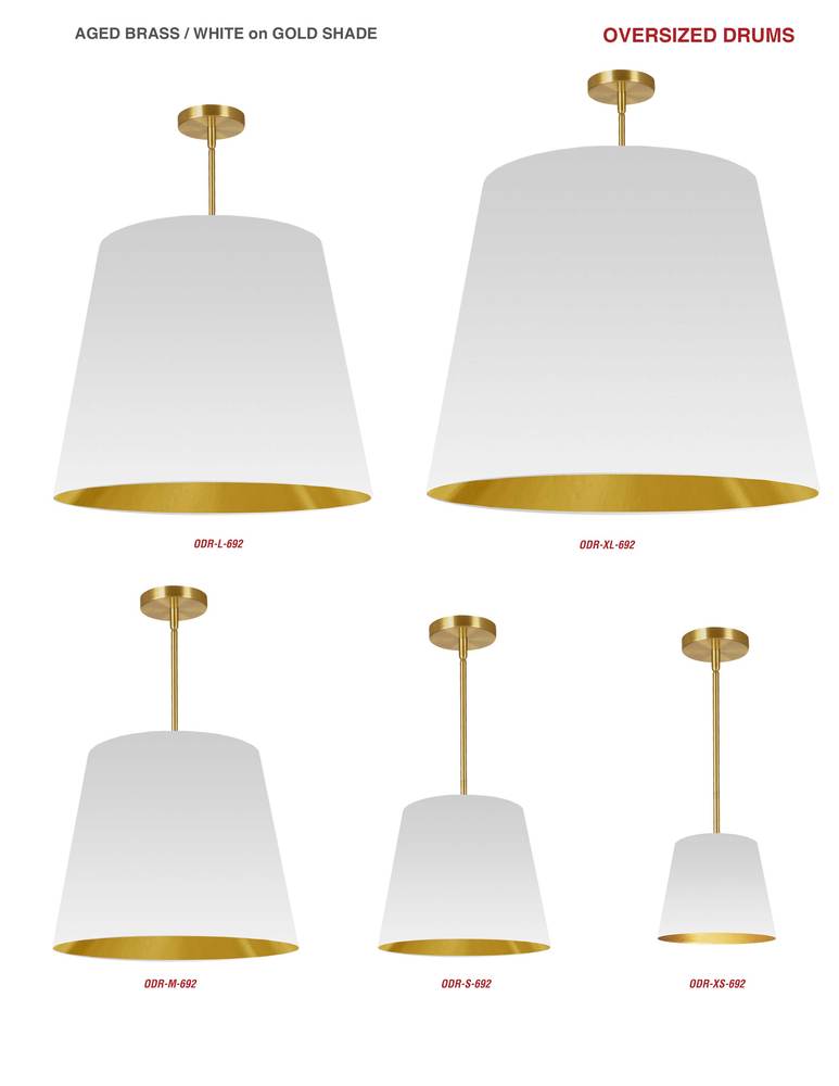 1LT Oversized Drum Pendant Medium, WH/GLD Shade by Dainolite