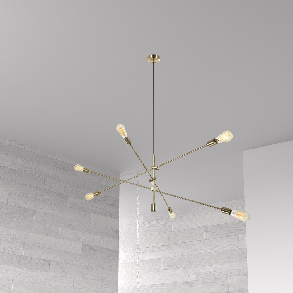 6LT Incandescent Adjustable Pendant, Aged Brass
